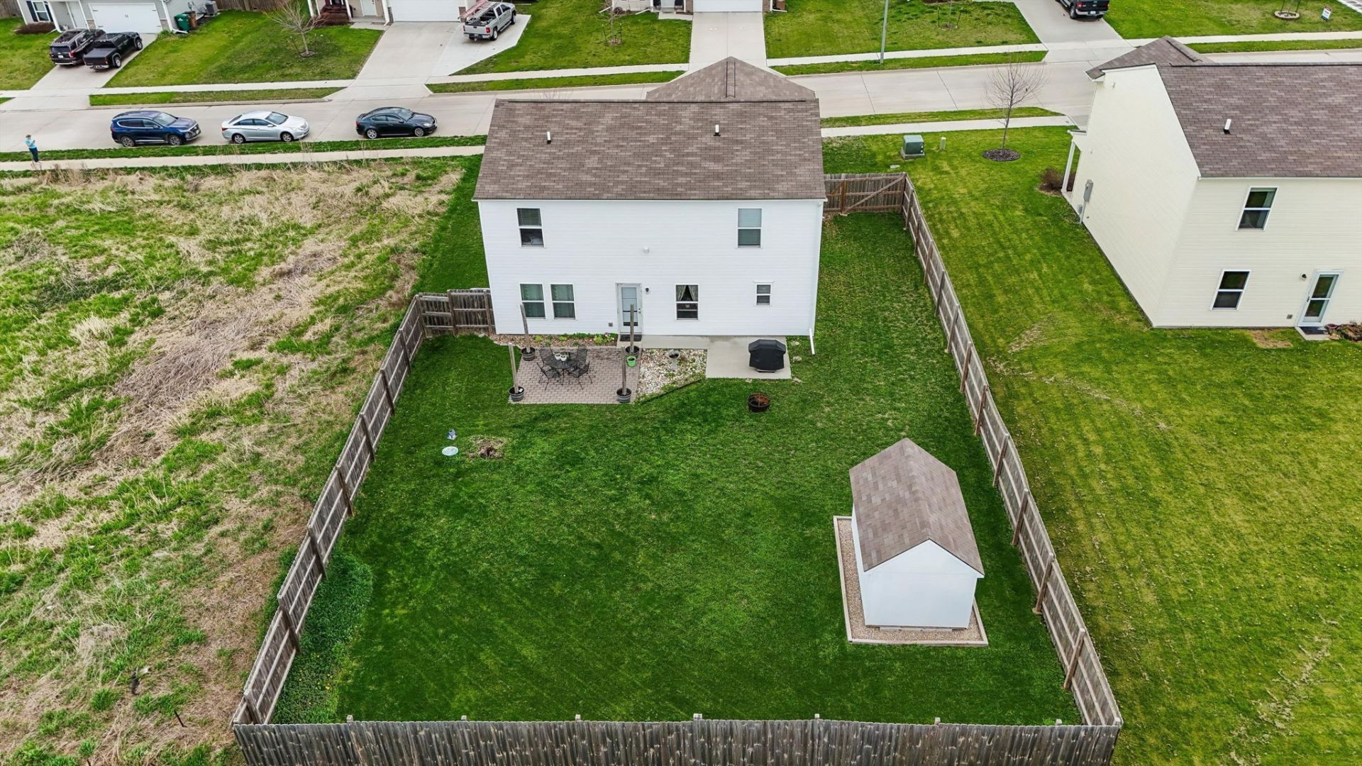 NEIGHBORING LOT IS A WILDLIFE RESERVE ... Enjoy peaceful views and added privacy in this beautifully maintained two-story home, built in 2019 and offering over 2,000 square feet of living space. Step inside to a welcoming dining area that flows naturally into an open-concept layout, featuring a spacious living room and a large, well-appointed kitchen with all appliances included. Upstairs, you'll find four generously sized bedrooms, providing flexibility and room to grow. The primary suite offers abundant space, a private en-suite bathroom, and a walk-in closet (currently set up as a den/man cave). A conveniently located second-floor laundry area includes a washer and dryer for added ease. Outside, enjoy a fully fenced backyard, perfect for relaxing, entertaining, or letting kids and pets play freely. A storage shed, added in 2021, provides plenty of room for tools and equipment. The brick and concrete patio areas create an ideal setting for summer evenings, while a hot tub hookup is already in place for future enjoyment. Patio furniture is negotiable. Call your favorite realtor and schedule your showing today!!